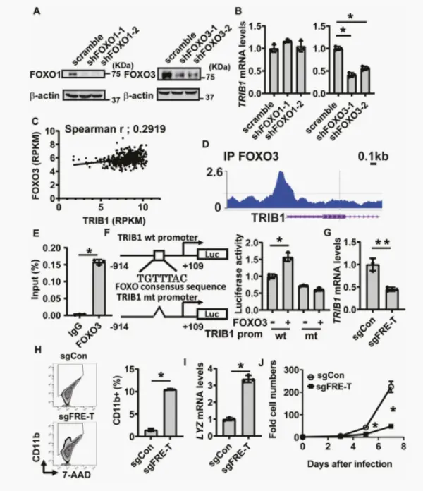 Down-regulation of TRIB1 through FOXO1 inhibitors contributes to the differentiation of AML cells, identifying cis regulatory elements of TRIB1 gene transcription to maintain the undifferentiated state of AML cells.